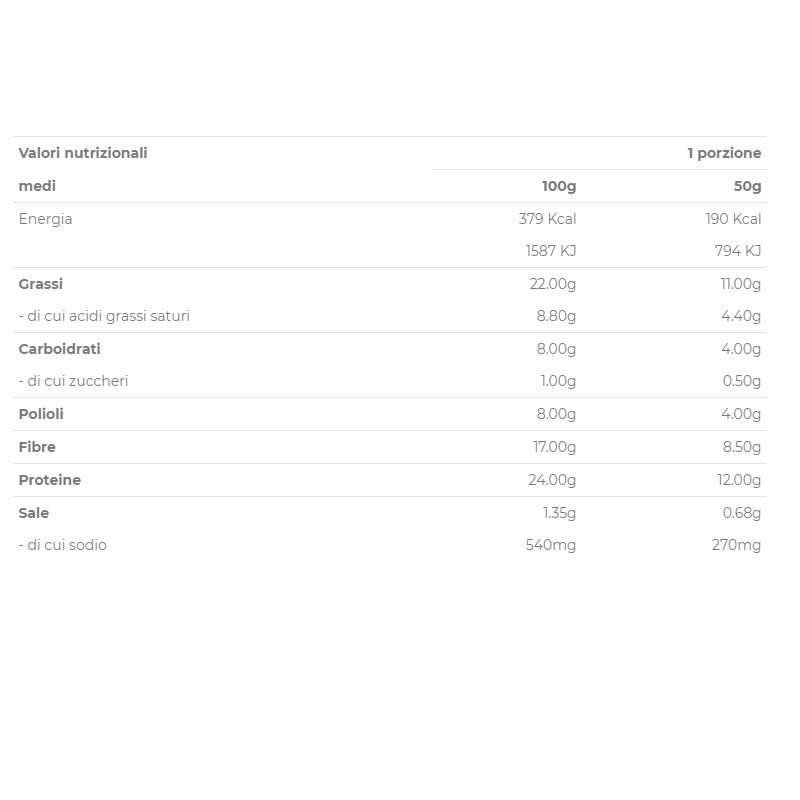Ottimo snack che nutre la tonicità muscolare mentre apporta solo 0,35 gr di zuccheri per porzione...Ideale a colazione come merenda da avere sempre con te