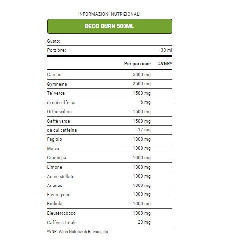 L’integratore alimentare termogenico Deco Burn viene prodotto in rispetto dell’antico metodo di estrazione senza utilizzo di alcool, zuccheri e conservanti. Prevede l’utilizzo di almeno dieci erbe officinali attraverso i processi di infusione, macerazione e decozione.