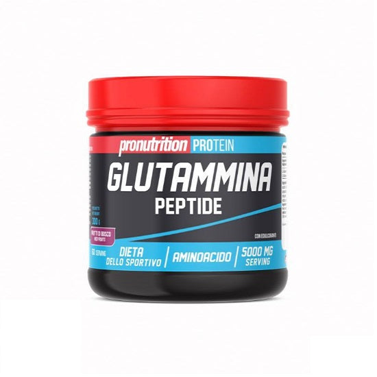 La formulazione di GLUTAMMINA PEPTIDE (costituita da due peptidi L-alanil L-glutammina e L-glicil-L-glutammina) si differenzia dagli integratori a base di sola glutammina cloridrato per la maggiore solubilità e stabilità in acqua e il maggiore assorbimento della glutammina utilizzata. La Glutamina è uno degli aminoacidi maggiormente presenti nel tessuto muscolare (viene quindi facilmente depauperato durante intensi sforzi e la sua richiesta aumenta in condizioni di stress psicofisico). Per questi motivi è molto utilizzata nella dieta degli sportivi che richiedono recupero muscolare, azione anticatabolica, azione antiossidante e potenziamento del sistema immunitario.