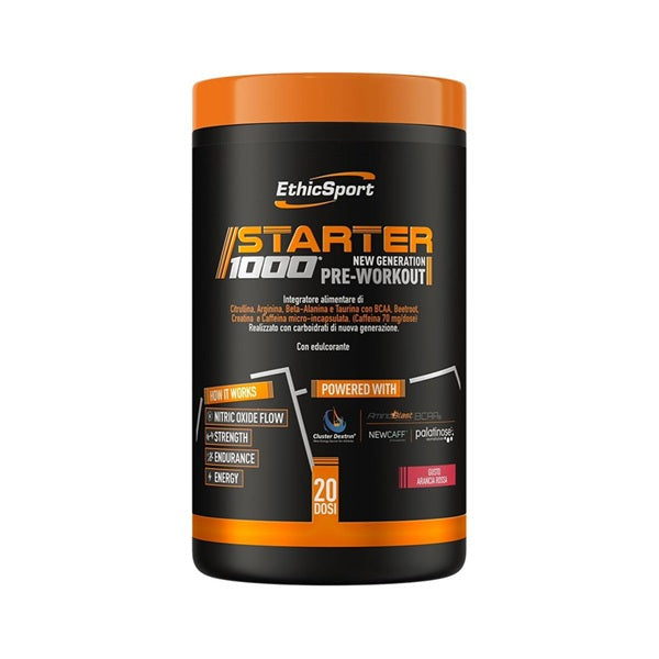 Starter 1000 è un prodotto specifico per la fase pre-gara o pre-workout per sostenere attività intense e prolungate, in particolare per un’ottimale gestione della fatica e della concentrazione. Indicato prima dell’allenamento o della gara. Contiene anche Isomaltulosio e Cluster Dextrin, due carboidrati di nuova generazione capaci di cedere glucosio in maniera graduale e continua.Venditore: EthicSport