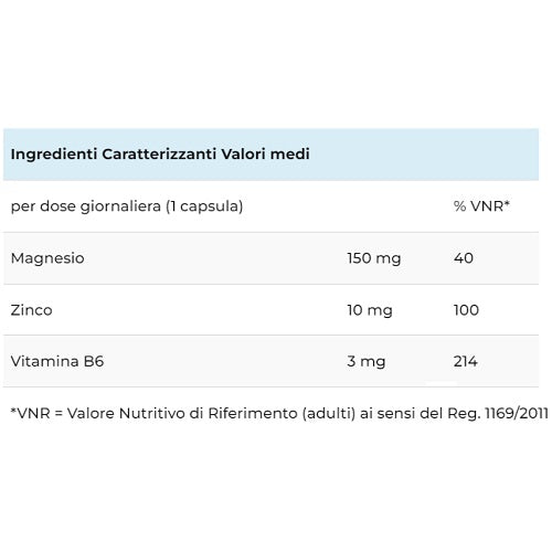 Inoltre, aiuta a mantenere i normali livelli di testosterone nel sangue e favorisce le naturali difese dell’organismo. Anche il magnesio ricopre un ruolo fondamentale durante l’esercizio fisico, in quanto è un cofattore enzimatico, è coinvolto nella trasmissione degli impulsi neuronali elettrici per un fisiologico ritmo contrazione/rilassamento delle fibre muscolari e favorisce l’equilibrio elettrolitico dei fluidi corporei e di tutti i comparti cellulari, per un corretto svolgersi delle reazioni biochimiche. A completamento della formula abbiamo la vitamina B6 che contribuisce alla regolazione ormonale e al metabolismo energetico per contrastare stanchezza e affaticamento e per sostenere le difese immunitarie.