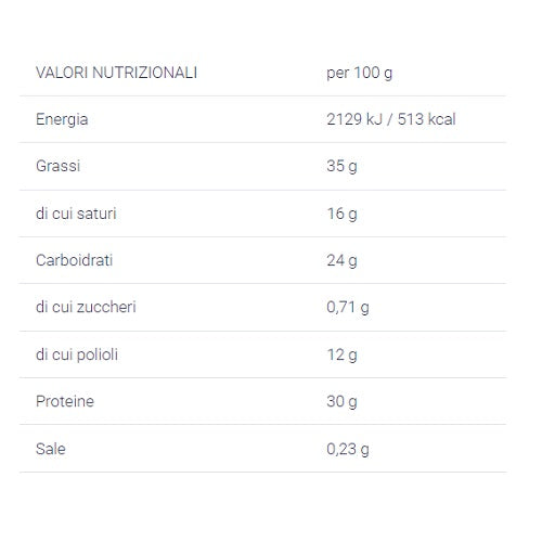 Cioccolato bianco con maltitolo (27 %) [burro di cacao; edulcorante – maltitolo; concentrato di proteine del siero (del latte); latte intero in polvere; burro concentrato (di latte); emulsionante – lecitina; estratto di vaniglia Bourbon]; isolato di proteine del siero (di latte); olio di palma; caseina (di latte); farina di frumento (glutine); amido di frumento (glutine); olio di canola; emulsionanti – lecitina (di soia), lecitina; cacao a basso contenuto di grassi; fibre vegetali; tuorlo d’uovo; aroma naturale; olio di cocco; sale; stabilizzante – gomma di guar; edulcorante – sucralosio; agenti di trattamento della farina – acido ascorbico.