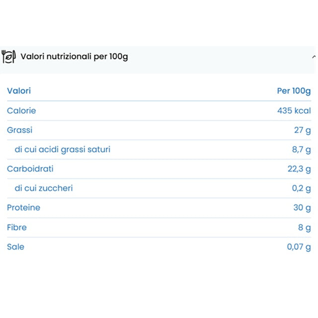 Può contenere tracce di: frutta a guscio, arachidi, semi di sesamo, senape, solfiti, sedano