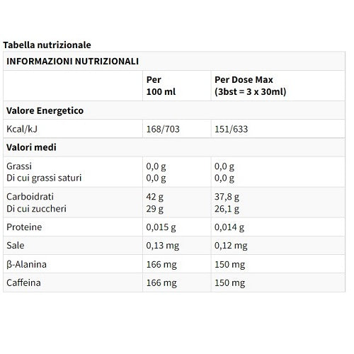 La versione BOOST si caratterizza per la presenza di β-Alanina e Caffeina.