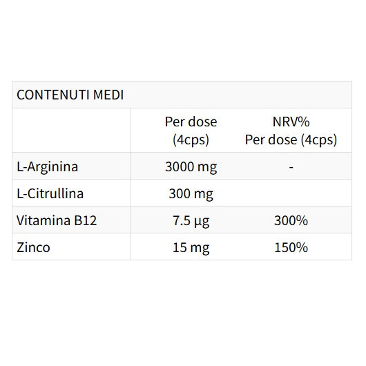 Ingredienti principali: Arginina, Citrullina, Inulina, Zinco, Vitamina B12