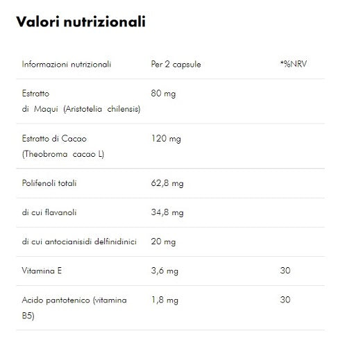 Polifenoli RX Una formulazione esclusiva per il tuo benessere quotidiano - con flavanoli del cacao - con delfinidine del Maqui - fonte di vitamina E e B5°° - funzione antiossidante - riduzione della stanchezza e dell’affaticamento*Venditore: EnerZona