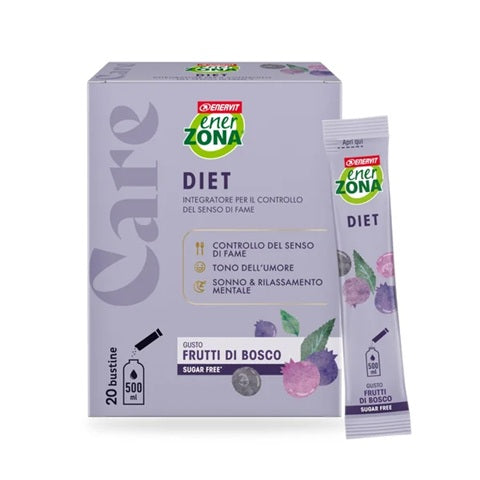 Enerzona Care Diet Integratore Controllo Fame Gusto Frutti di Bosco è un integratore alimentare formulato per aiutare a controllare il senso di fame e supportare il benessere mentale.