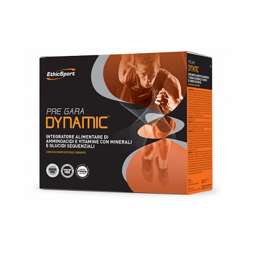 Il prodotto permette di realizzare una soluzione di carboidrati complessi ed elettroliti, utile al mantenimento di prestazioni di resistenza durante l’esercizio fisico. Pre-Gara Dynamic fornisce maltodestrine a catena media, amminoacidi glucogenici e amminoacidi ramificati che, venendo metabolizzati in tempi diversi, apportano energia frazionata nel tempo. Fornisce creatina associata ad acido alfa-chetoglutarico, alanina e taurina. Il prodotto contiene anche un fitocomplesso di Guaranà e Ginseng titolati, utili per contrastare la stanchezza fisica e mentale. La presenza di vitamine (B2, B5, B6, C e Folato) coadiuva la riduzione della stanchezza e dell’affaticamento, mentre gli elettroliti presenti (Ca, Mg, K) contribuiscono alla normale funzione muscolare. Le vitamine (B1, B2, B6, C, Biotina) permettono un fisiologico metabolismo energetico e la Vit. B6 supporta il normale metabolismo delle proteine e del glicogeno. Il prodotto non contiene glutine (Gluten Free) è pertanto indicato anche per soggetti celiaci o con intolleranza al glutine.