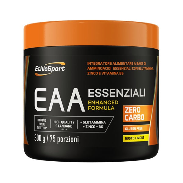 EAA - Enhanced Formula - AMMINOACIDI ESSENZIALI solubili è un integratore di A.A. Essenziali con Glutammina, Zinco e Vitamina B6, formulato per supportare la sintesi proteica, il recupero muscolare e contrastare l'affaticamento. Grazie alla formula evoluta, senza carboidrati e gluten-free, è ideale per atleti di endurance e di forza che desiderano un'integrazione mirata ed efficace. Lo zinco contribuisce alla normale sintesi proteica, mentre la vitamina B6 contribuisce al metabolismo energetico e delle proteine, e alla riduzione della fatica. È Doping Free Tested, altamente solubile e con un piacevole gusto di limone naturale.