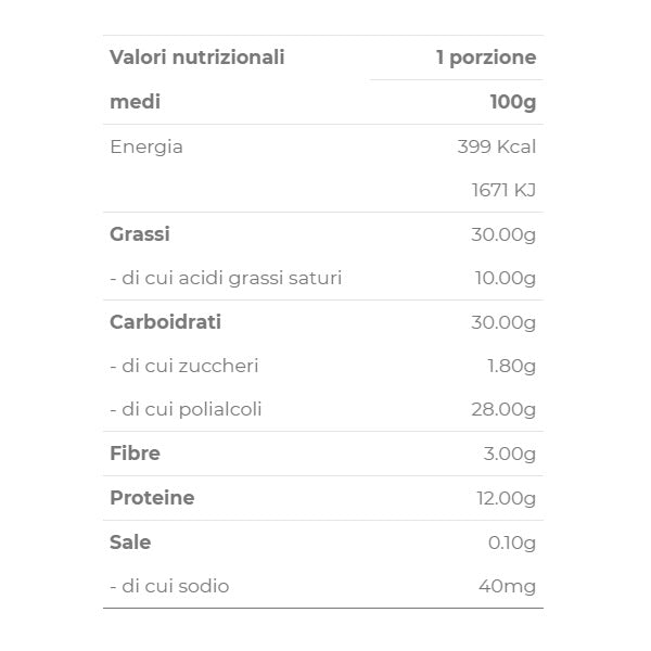Ottimo snack che nutre la tonicità muscolare mentre apporta solo 0,35 gr di zuccheri per porzione...Ideale a colazione come merenda da avere sempre con te