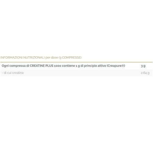 CREATINE PLUS 1000 è un integratore alimentare in compresse a base di Creatina monoidrato (Creapure®). Ogni compressa di CREATINE PLUS 1000 contiene 1 g di principio attivo (Creapure®) .