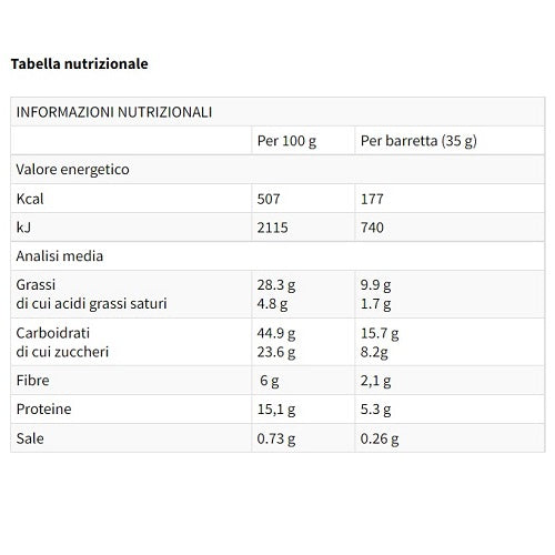 Le barrette della linea ENERGY sono studiate per chi pratica attività sportive. ENERGY SPECIAL è un alimento energetico con carboidrati ad assorbimento sequenziale da frutta secca, semi e cereali. La particolare formulazione di questo prodotto fornisce energia rapidamente e in maniera prolungata. E' suggerito in particolare per gli sport di endurance ma risponde perfettamente alle esigenze di tutti gli sport. E' preparata senza conservanti e coloranti, risulta particolarmente digeribile e facilmente masticabile. ENERGY SPECIAL ha un gusto dolce-salato che la rende diversa dalle solite barrette energetiche e conserva inoltre la sua consistenza, anche in condizioni climatiche proibitive.