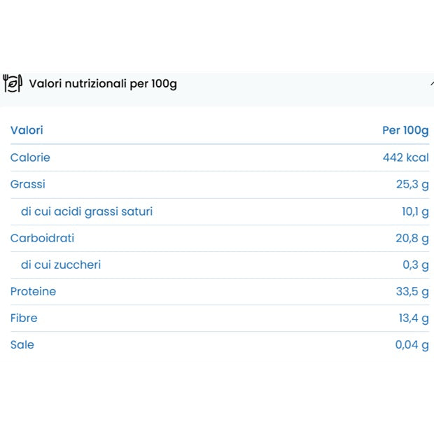 Può contenere tracce di: frutta a guscio, arachidi, semi di sesamo, senape, solfiti, sedano
