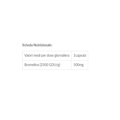 Bromelina (2500 GDU/g), capsula vegetale (idrossi propilmetilcellulosa), agente ante-agglomerante (sali di magnesio degli acidi grassi), agente di carica (cellulosa microcristallina).