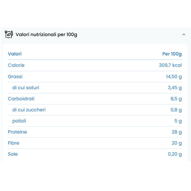 Con 14 g di proteine, 10 g di fibre e solo 4,2 g di carboidrati per 100 g, è ideale per chi desidera limitare gli zuccheri senza rinunciare alla dolcezza della frutta.