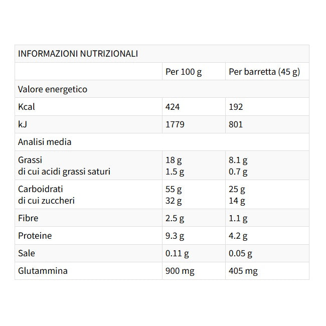 Le barrette della nuova linea Tecnica ENERGY sono studiate per chi pratica attività sportive. ENERGY LONG RACES è una barretta per sportivi consigliata per fornire energia in forma solida, prima e durante l’allenamento. La barretta ENERGY LONG RACES è stata sviluppata per offrire un apporto energetico importante e ripartito su più nutrienti, apporta Alanina, Leucina e Glutammina, risulta pertanto indicata per le uscite più lunghe e per le attività di resistenza più impegnative. Offre un apporto energetico veloce, ma che dura nel tempo.