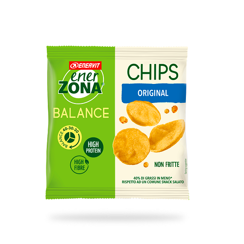 EnerZona Chips sono lo snack salato bilanciato 40-30-30, ideale sia per chi segue la dieta Zona sia per chi dà valore a un'alimentazione bilanciata, grazie alla loro formulazione perfettamente bilanciata nei macronutrienti (il 40% delle calorie proviene dai carboidrati, il 30% dalle proteine e il restante 30% dai grassi).
