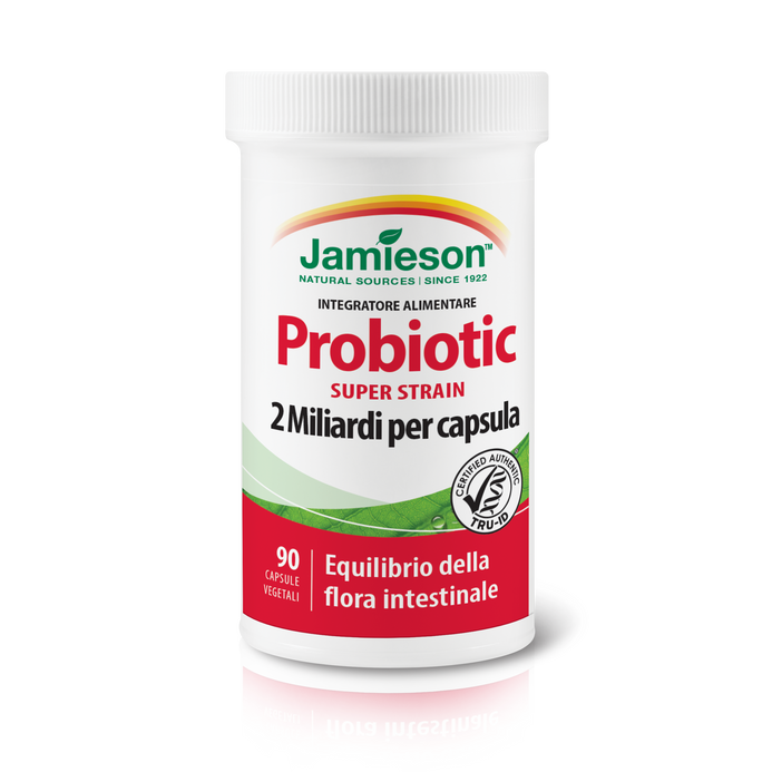 PROBIOTIC SUPER STRAIN di Jamieson contiene due miliardi di microrganismi attivi. Nel prodotto sono presenti dieci ceppi di fermenti lattici probioticiVenditore: Jamieson