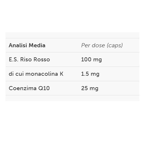 Ogni capsula è realizzata con ingredienti di origine naturale, garantendo un prodotto senza glutine e adatto a chi segue una dieta vegana. La titolazione precisa della monacolina K (2,9 mg per capsula) assicura un dosaggio conforme alle normative europee, offrendo un’integrazione sicura ed efficace. Il coenzima Q10, con i suoi 20 mg per capsula, fornisce un supporto essenziale per contrastare la riduzione dei livelli endogeni di questa molecola, spesso associata all’uso di sostanze che inibiscono la sintesi del colesterolo, come la monacolina K.