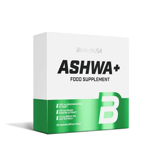 Ashwa+ 500 mg di estratto di Ashwaganda 125 mg di estratto di Panax ginseng 75 mg di estratto di tè verde Complesso di 5 principi attivi da estratti vegetali Confezione in blister sufficiente per 30 giorniVenditore: Biotech USA