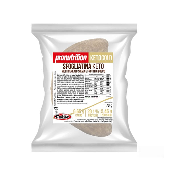 Sfogliatina Keto 70g Multicereali Frutti di Bosco Pronutrition è una deliziosa sfogliatina chetogenica ai multicereali ripiena di crema ai frutti di bosco senza zucchero. Ideale per la dieta chetogenica a basso contenuto di zuccheriSpedizione GRATIS da 29,90 euro