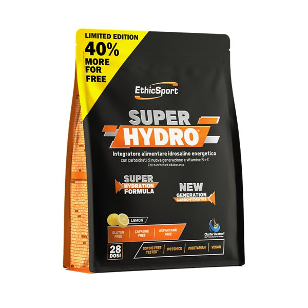 Integratore alimentare idrosalino energetico con carboidrati di nuova generazione e vitamine B e C - Elettroliti bilanciati per un’ottimale idratazione - Ipotonico - Bassa pressione osmotica - Carboidrati di nuova generazione a lento rilascio e ad elevata efficienza - Con HBCD (destrine cicliche alta mente ramificate) e maltodestrine de1 SuperHydro è una speciale formulazione che mantiene prestazioni di resistenza durante l’esercizio fisico prolungato (*), ottimizza l’assorbimento di acqua durante attività intense (*) e consente un’ottimale idratazione. (*) l'effetto è riferito alla soluzione preparata secondo le modalità di utilizzo indicateSpedizione GRATIS da 29,90 euro
