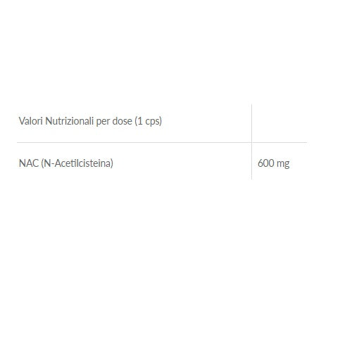 Integratore alimentare a base di NAC (N-Acetil-L-Cisteina), in capsule vegetail.