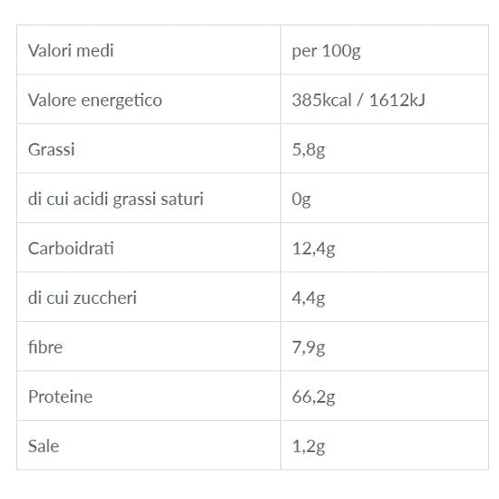 Proteine vegetali (riso, mais, sorgo, frumento), farina di frumento, semi di sesamo, semi di lino, lievito, sale, acqua.
