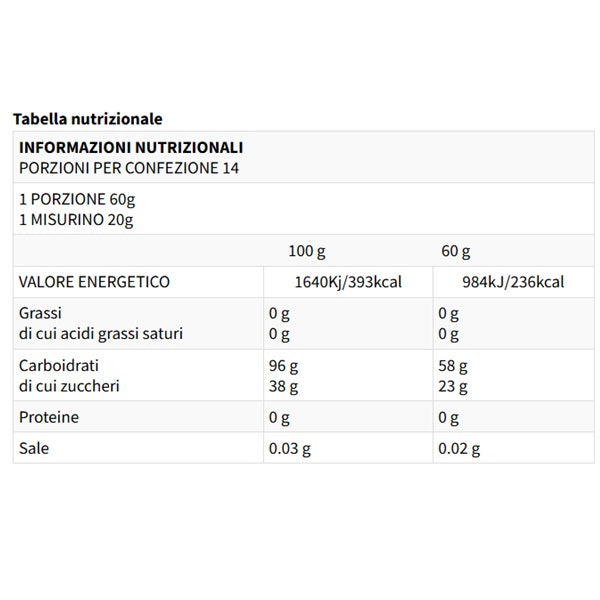 Indicazioni Super Dextrin PRO è un integratore alimentare energetico a base di carboidrati di nuova generazione. Il prodotto è progettato per chi svolge attività fisica intensa e prolungata, con affaticamento muscolare. Facilita il ripristino delle riserve di glicogeno nei muscoli. Istruzioni per l'uso Sciogliere 60 g (circa 3 misurini) di polvere in 600 ml di acqua e assumere durante l’attività fisica. Dosare la quantità in funzione delle necessità e delle capacità digestive. L’assunzione di elevati carichi di carboidrati richiede un adeguato allenamento intestinale.