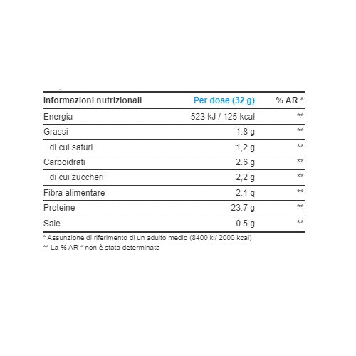 Mescola 1 porzione (1 + 3/4 misurini = 32 g) in 250 ml di acqua e assumi da 1 a 3 porzioni al giorno tra i pasti, a seconda del tuo fabbisogno proteico giornaliero.