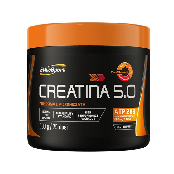 Creatina 5.0 è un integratore innovativo di creatina con Crea3Power e ATP, due elementi essenziali per il supporto energetico cellulare, ideale per atleti che cercano performance avanzate. Crea3Power offre all’organismo tre diverse forme biodisponibili di creatina per la migliore performance. La creatina è nota per migliorare le prestazioni fisiche in sforzi brevi e intensi. ATP è fondamentale per la produzione energetica cellulare, supporta il corpo nelle fasi di alta intensità, aiutando l’efficienza energetica intracellulare. Creatina 5.0, formula esclusiva della ricerca EthicSport, è altamente purificata, micronizzata (200mesh) e formulata per un'assimilazione ottimale. L’alta qualità è garantita dalla certificazione microbiologica e doping free tested.