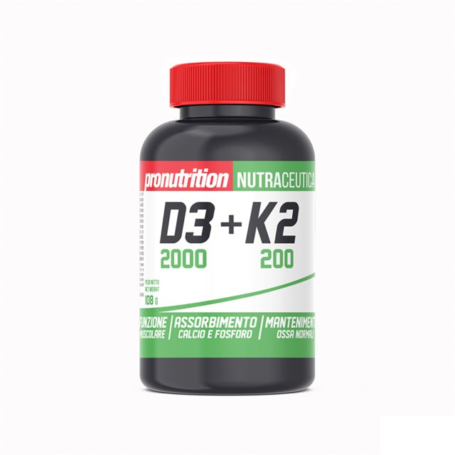 Integratore Alimentare a base di Vitamina D3 e K2. Le vitamine K2 e D3 utilizzate sono ottenute per fermentazione vegetale. La D3 da lichene islandico e la K2 è sotto forma di menachinone-7. Le vitamine D e K contribuiscono al mantenimento di ossa normali. La Vitamina D contribuisce al normale assorbimento/utilizzo del calcio e del fosforo ed a normali livelli di calcio nel sangue ed al mantenimento della normale funzione muscolare e normale funzione del sistema immunitario. Il prodotto non contiene naturalmente lattosioAgenti di carica: Cellulosa microcristallina e Calcio Difosfato, Antiagglomerante: Magnesio Stearato, Menachinone (Vitamina K), Colecalciferolo (Vitamina D3)