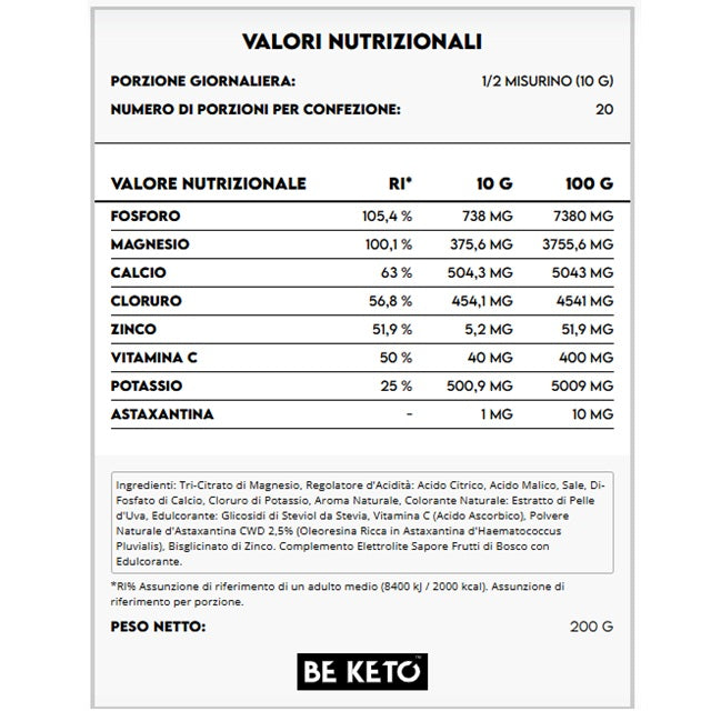 Gli Elettroliti Ketolytes in Polvere al gusto di Frutti di Bosco sono un integratore alimentare completo che supporta l’idratazione ottimale del corpo e offre numerosi benefici per la salute.Venditore: BE KETO