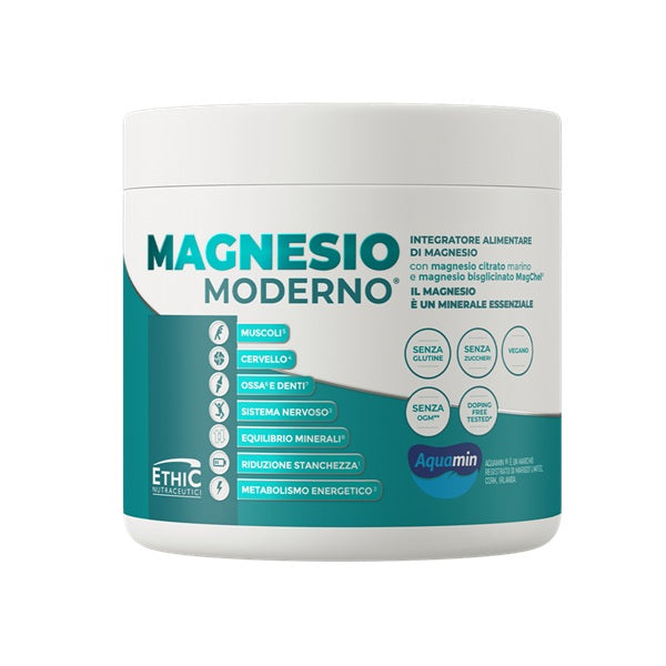 Magnesio Moderno è una la formula innovativa che combina magnesio citrato marino (AQUAMIN®) e magnesio chelato (MagChel®), per ottenere tanti benefici in un solo prodotto: il magnesio è così efficace e biodisponibile.Spedizione GRATIS da 29,90 euro