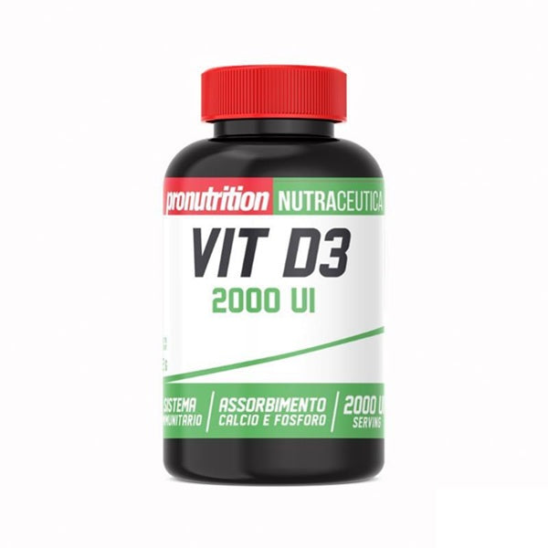 Vit D3 di Pro Nutrition apporta 2000 U.I. per compressa ed il dosaggio consigliato è di una compressa al giorno