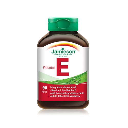 La vitamina E, nota anche come tocoferolo, è una vitamina liposolubile che viene accumulata nel fegato. È un importante antiossidante e contribuisce alla protezione delle cellule dallo stress ossidativo e aiuta il rinnovo cellulare. Inoltre contribuisce a proteggere l’organismo dagli effetti dannosi dell’inquinamento e di altre sostanze tossiche. La vitamina E si trova in diversi alimenti come gli oli vegetali (oliva, girasole, soia), nella frutta secca, nei semi di grano e nelle verdure a foglia verde. La cottura e il trattamento dei cibi (come la surgelazione) riducono il loro contenuto in vitamina E. Vitamina E di Jamieson è di origine naturale, da oli vegetali. Una softgel di vitamina E di Jamieson contiene 30 mg di vitamina E.