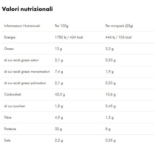 Una ricetta unica ed esclusiva, 100% vegetale, ricca in fibre e in proteine, nata dalla combinazione di ingredienti attentamente selezionati e di altissima qualità.