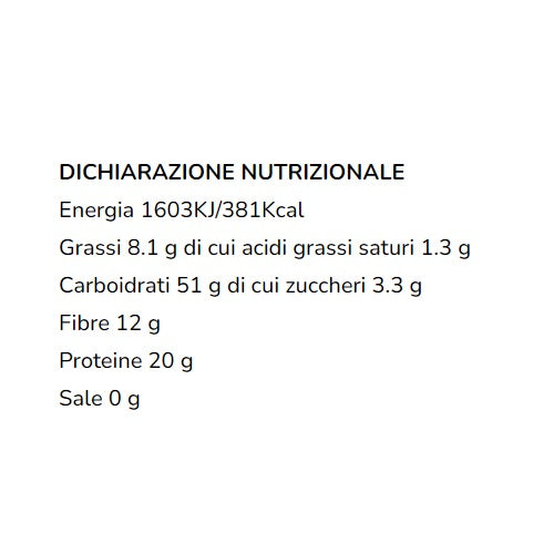 Ingredienti: fiocchi di AVENA integrali senza glutine, polvere proteica di MANDORLE 22%, edulcorante: glucosidi steviolici -E960, aromi naturali.