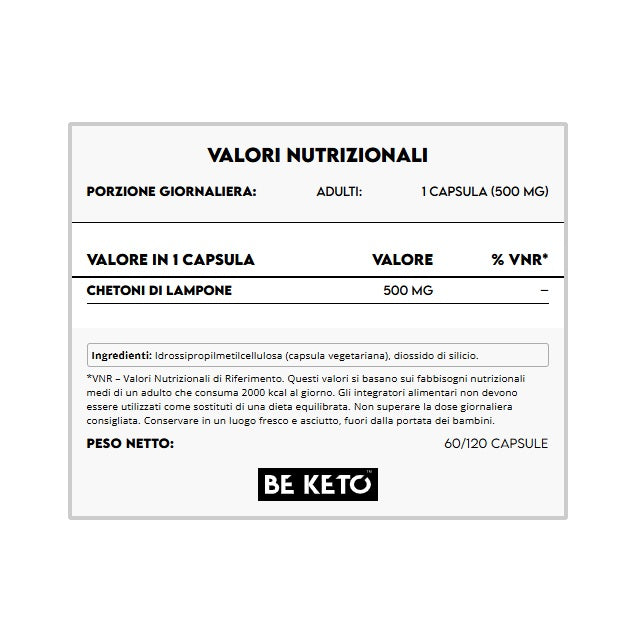Il Chetone di Lampone in Capsule è un integratore alimentare che supporta il processo naturale di combustione dei grassi attraverso la stimolazione del metabolismo lipidico.Venditore: BE KETO