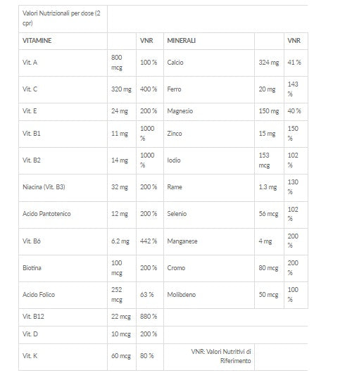 Integratore alimentare a base di vitamine e minerali, in compresse. *Le VIT. C, D & lo zinco contribuiscono al normale funzionamento del sistema immunitario.