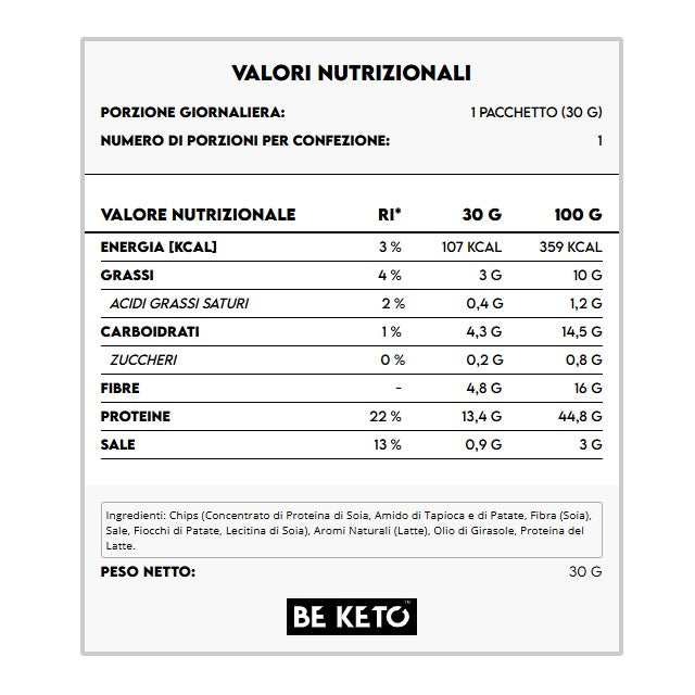 Le Keto Chips al gusto di Formaggio Svizzero e Cipolla Francese sono la migliore alternativa alle classiche patatine per tutti gli amanti di uno stile di vita sano.Venditore: BE KETO